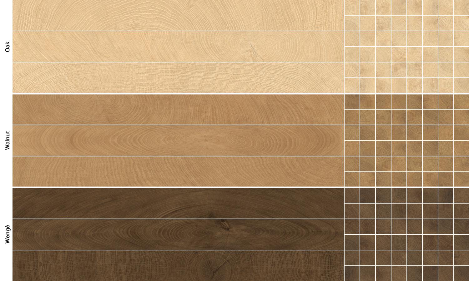 La firma única de los árboles, esculpida por manos italianas en formas atemporales. En la colección “W-Circles” no se trata simplemente de reproducir la materia lignaria, sino de evocar la totalidad del discurso de sus anillos, símbolos de un crecimiento perpetuo, laberintos de memoria y de sentido. La gama, articulada en tres colores, incluye los formatos de 10 x 10, el brick de 5,3 x 30, los dos listones de 10 x 120 y 20 x 120, además de la decoración 3D Slats de 60 x 120, realizada con un motivo de duelas. El producto se fabrica uniendo diversas variantes lignarias, dando lugar a una composición articulada y compleja en la que las proporciones y la fluidez visual se rebelan con equilibrio, descubriéndose a la mirada con una armonía perfecta. El resultado es una materia en la que la condición cíclica natural se hace estilo, transformando cada ambiente en un homenaje al tiempo y a la belleza de la naturaleza. La colección se ve enriquecida con el Mosaico 5 x 5 y con el Mosaico 3D Cube, caracterizado por presentar teselas de efecto madera tridimensionales que transmiten dinamismo a los espacios.