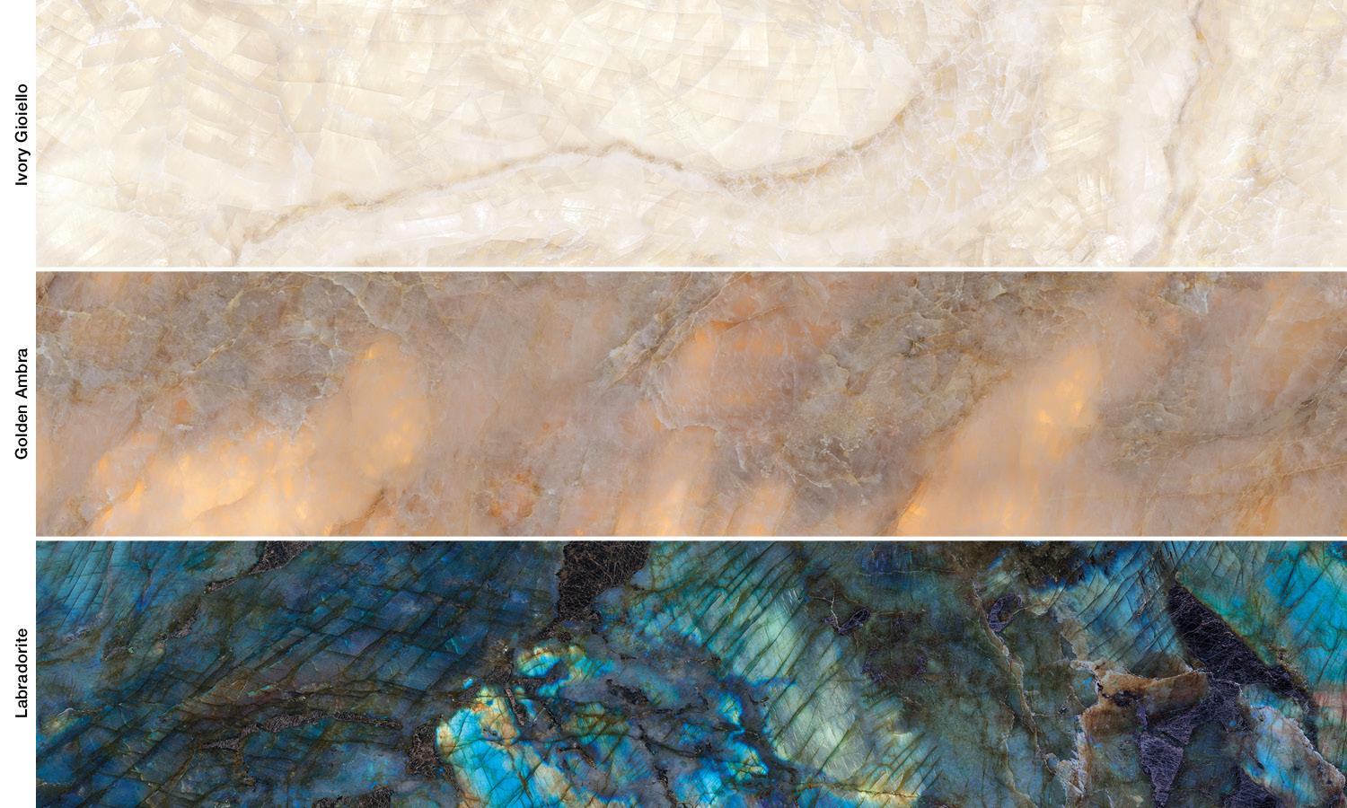 Nous avons sélectionné avec soin d'authentiques pierres précieuses, en choisissant les gemmes les plus adaptées pour donner vie à un parcours créatif unique. Le projet s'est ainsi transformé en un récit qui explore trois pierres précieuses au moment où la lumière interagit avec elles, révélant leur translucidité ou labradorescence dans toute leur splendeur. Les dalles uniques caractérisent des espaces singuliers, exclusifs et pleins de caractère, parfaits tant pour de majestueuses architectures que pour des cadres intimes et mystérieux, créant des atmosphères évocatrices et fascinantes. La gamme comprend les finitions Full Lappato Rettificato, Silktech et trois grands formats différents pour un total look total à l'effet scénographique saisissant. Les deux décors complètent l'offre, laissant place à la créativité des concepteurs et des designers et ouvrant la voie à de nouvelles possibilités de conception.